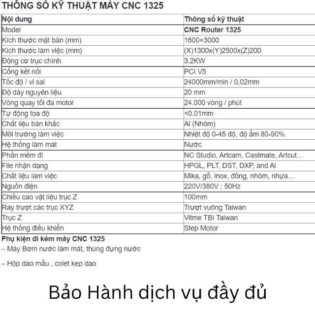 – Máy CNC 1325 là dòng máy hoạt động bền bỉ, có khả năng chịu được cường độ làm việc cao và liên tục 24/24.